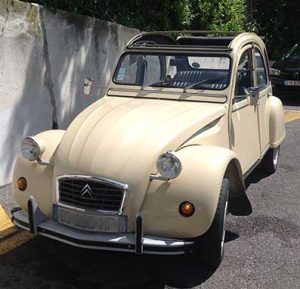 Dame Deuche « du Parc », rutilante et bichonnée, paresse au soleil du printemps.